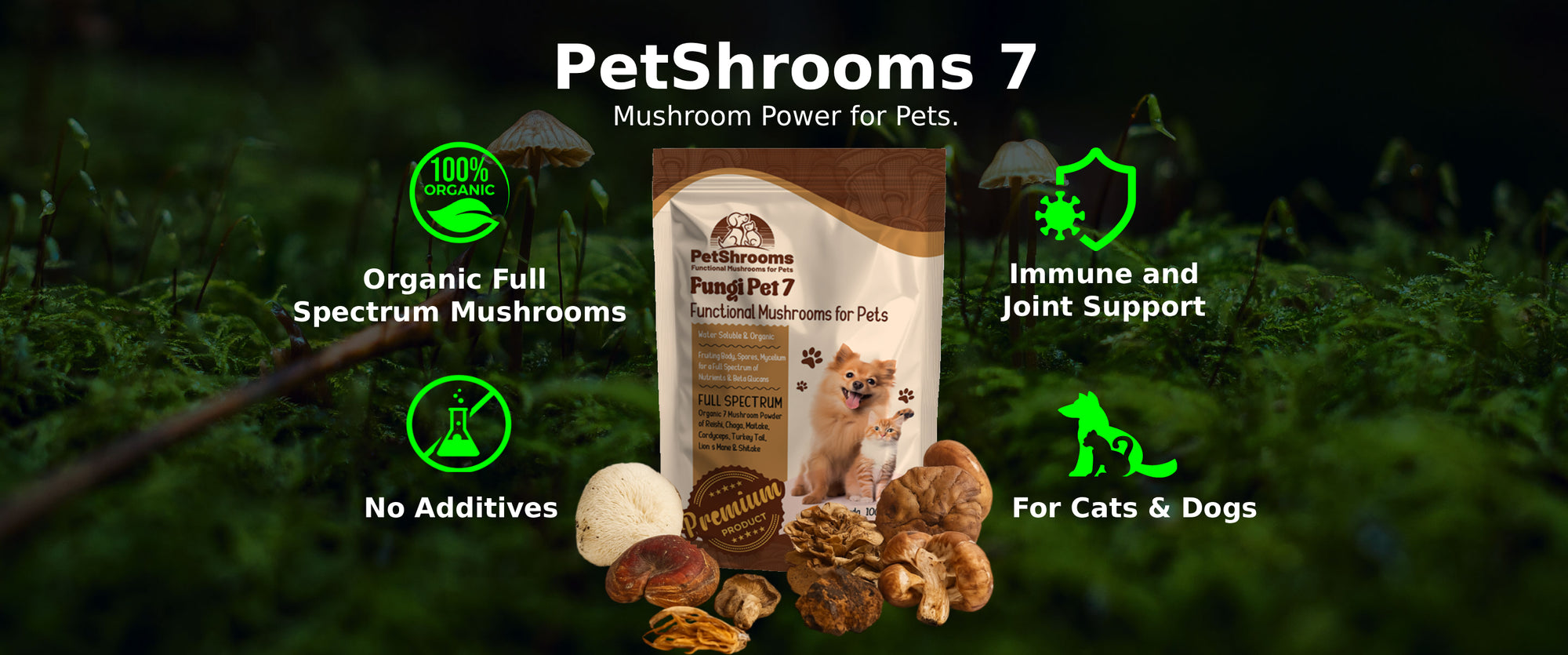 PetShrooms supports your pet’s immune system, cognitive health, energy, mobility, digestion, and coat quality. It helps dogs and cats maintain vitality, especially as they age.